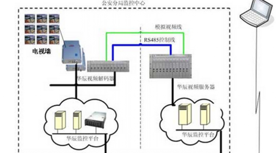 对该类客户可在派出所监控中心加视频分配器把视频信号一分为二,一路给原监控系统,一路接华辰视频服务器,视频服务器通过互联网接到公安分局监控平台;